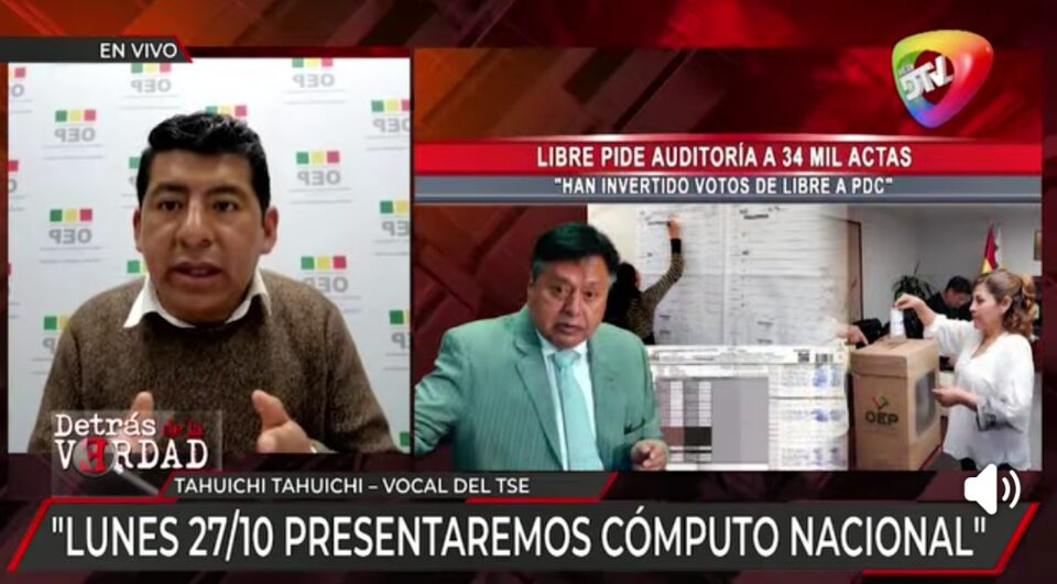 La Paz, 22 de oct de 2025 (RED DTV).- El vocal del TSE, Tahuichi Tahuichi, informo que en Sala Plena los vocales decidieron autorizar a Libre acceso a actas del balotaje electoral, esto para garantizar transparencia, “TSE no va a ocultar nada, entregaremos información para despejar narrativa de fraude”.