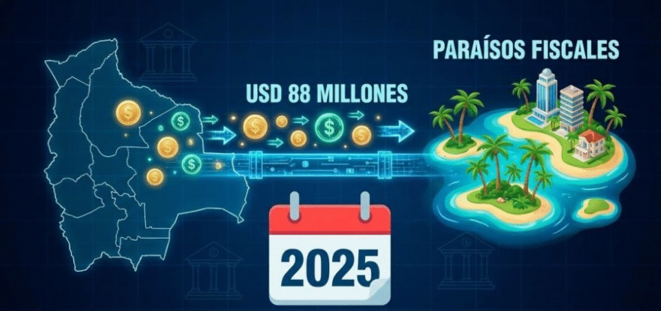 Bolivia, 23 feb 2026 (RED DTV).- Un análisis consolidado de los Hechos Relevantes de las juntas ordinarias de accionistas de los bancos bolivianos correspondientes a las gestiones 2024 y 2025 —documentos oficiales depositados en la Bolsa Boliviana de Valores— permite reconstruir, por primera vez con precisión, el mapa completo de hacia dónde fluyeron los dividendos de la banca boliviana. El resultado es categórico: USD 88 millones salieron de Bolivia hacia siete jurisdicciones que ofrecen impuestos nulos o mínimos sobre dividendos recibidos del exterior.