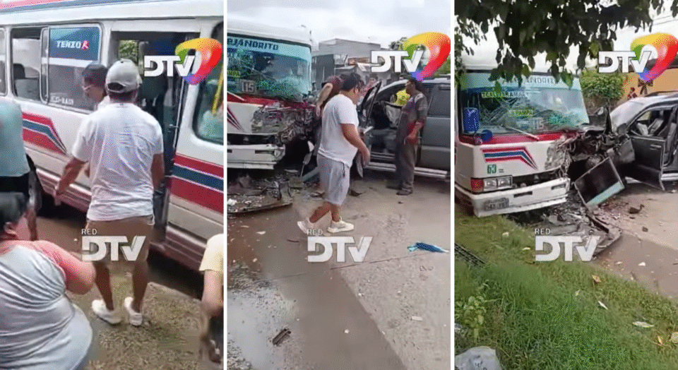 Santa Cruz, 11 dic de 2025 (RED DTV).- Un accidente de tránsito se registró en el 5to anillo de la avenida Moscú, donde una vagoneta Runner chocó contra un micro de la línea 115 que llevaba pasajeros a bordo. Varias personas, entre ellas dos niños, resultaron h3r1d0s.