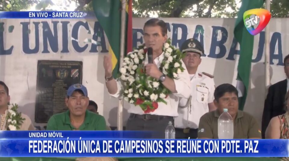 La Paz, 27 nov de 2025 (RED DTV).–El presidente Rodrigo Paz se reunió con la Federación Única de Campesinos, donde afirmó que su gestión no responderá a intereses partidarios y que su prioridad será “trabajar con quienes quieren sacar la patria adelante”, remarcando que no negociará con “políticos mañudos” ni con estructuras que, dijo, hicieron de la administración pública un espacio de corrupción y persecución.