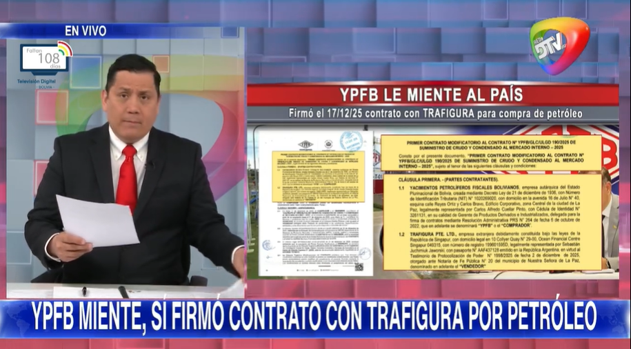 Akly afirmó ante un medio de comunicación que YPFB no había suscrito ningún contrato de provisión de crudo y aseguró que no existía evidencia de dichas operaciones. Sin embargo, según documentos se DESMIENTE esta versión y en las imágenes se observan los contratos firmados con la empresa Trafigura, incluyendo el contrato 190/2025, fechado el 17 de diciembre de 2025, y su primer contrato modificatorio.